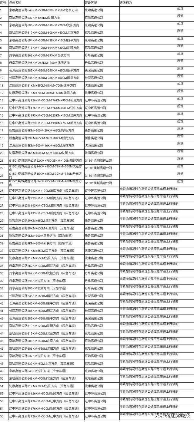附表:《沈陽市新建55處電子警察明細表》